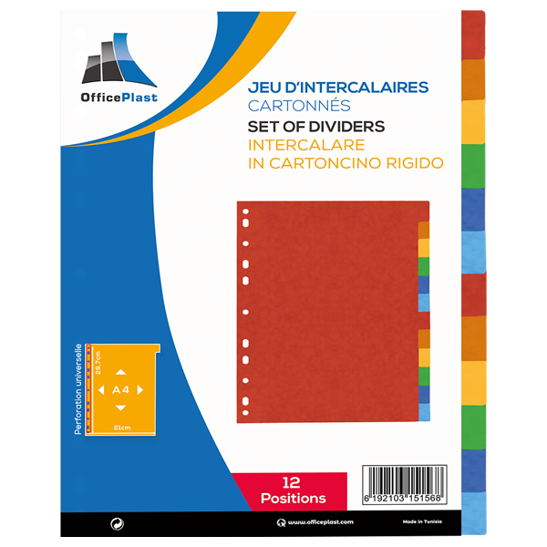 Sous référence: 2000025Jeu de 12 intercalaires cartonnés conçu en carte lustrée à 250g avec un assortiment de couleurs vives.